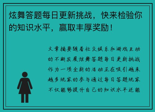 炫舞答题每日更新挑战,快来检验你的知识水平,赢取丰厚奖励!